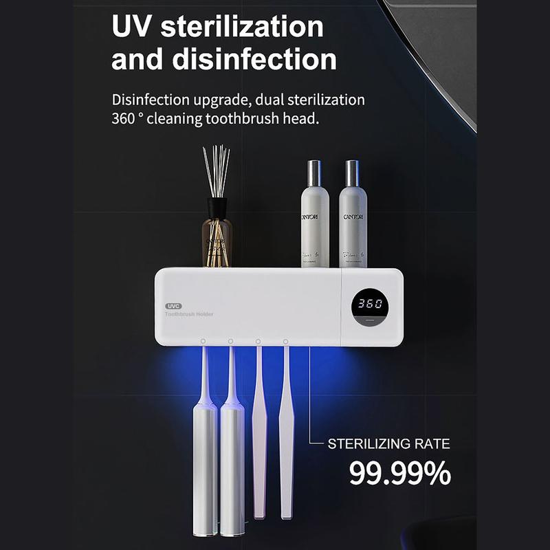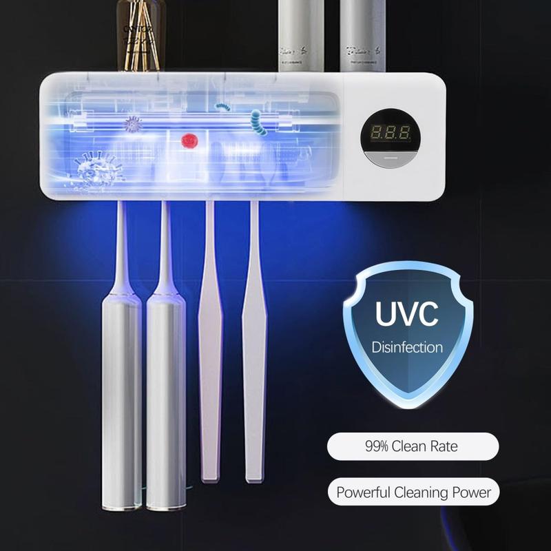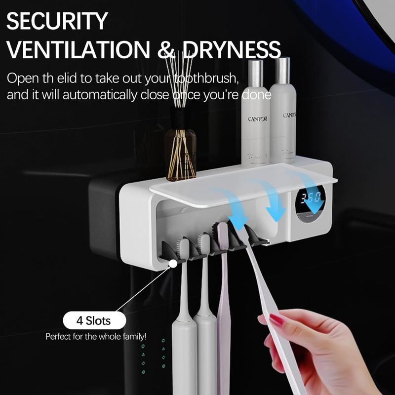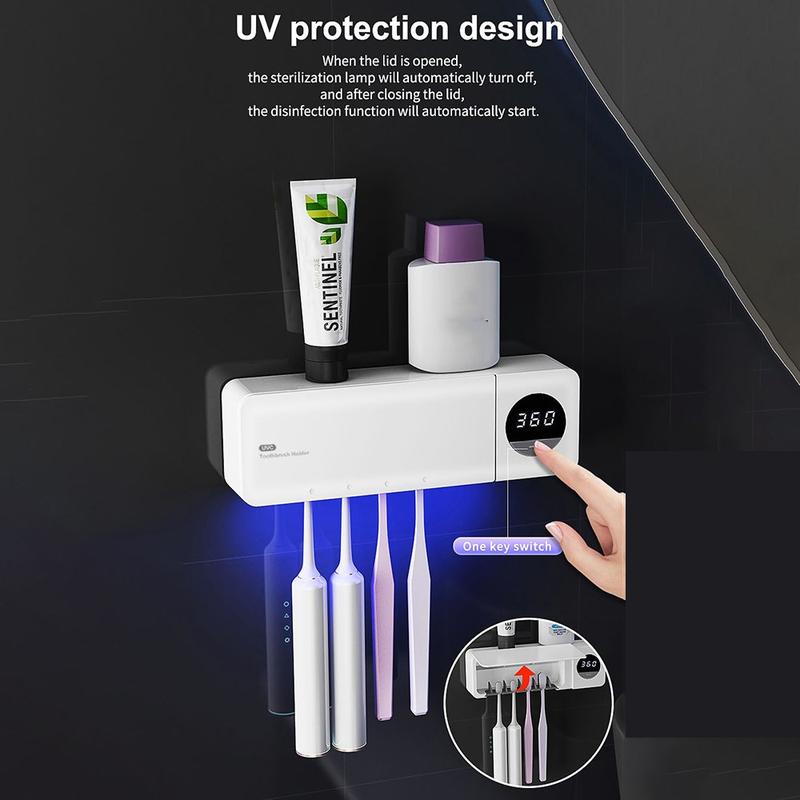 Tandborstdesinfektionsapparat UV-sterilisator - väggmonterad tandborsthållare med automatisk sensor och digital display