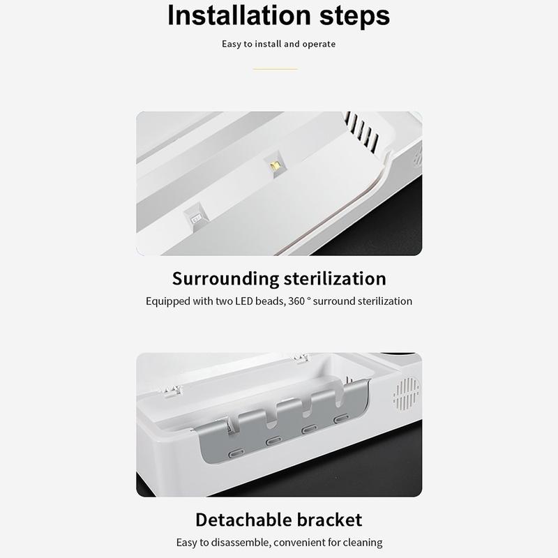 Denna UV-sterilisator kombinerar hygien, bekvämlighet och smart design i en och samma enhet. Den skyddar inte bara din tandborste från skadliga bakterier utan håller också ditt badrum snyggt och organiserat. Den automatiska driften gör det enkelt för familjer, barn och upptagna yrkesverksamma att upprätthålla korrekt munhygien utan ansträngning.