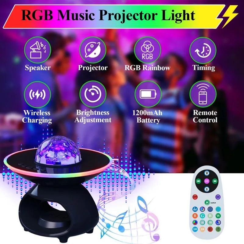 TCSP-001-C 4-i-1 stjärnprojektorlampa - 15 W trådlös laddare, Bluetooth 5.0-högtalare och RGB-stämningsljus