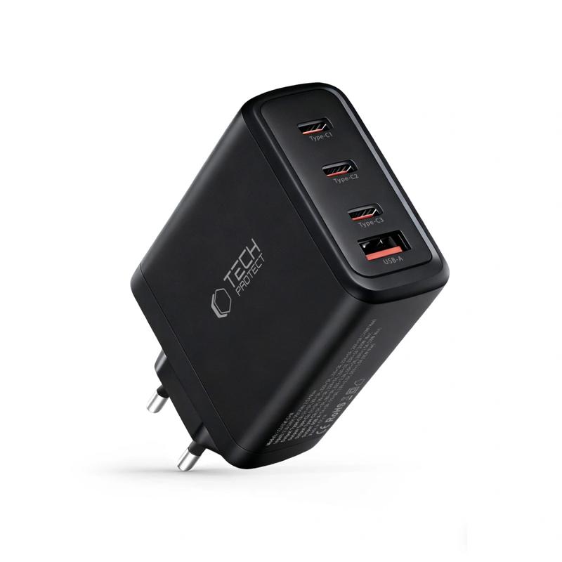 Tech-Protect NC140W 4-portars GaN-laddare - 3x USB-C, 1x USB-A, 140W snabb laddare med strömförsörjning