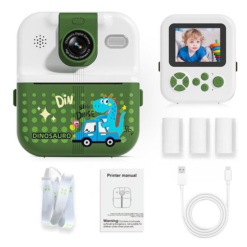 Tecknad djurdesign P02 Instantkamera för barn med 2,4-tums IPS-skärm och 180° vridbar lins - WalkPrint-app, USB-C, 1500 mAh, termisk fotoprinter