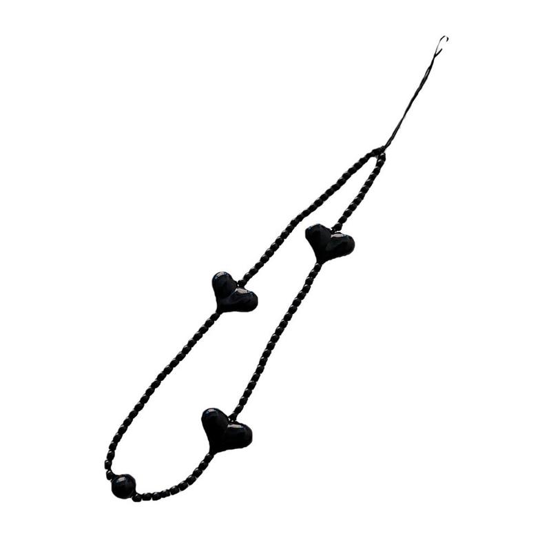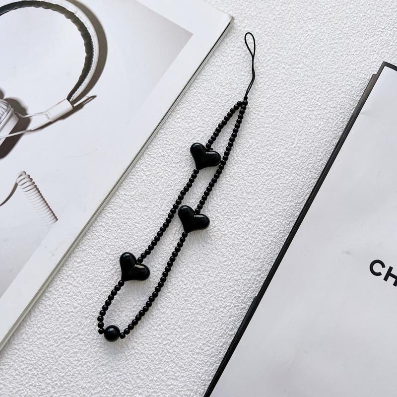 Ge din telefon en lekfull och stilfull detalj med denna 23.5cm långa telefonrem med hjärtformade pärlor. Den är utformad med glansiga svarta hjärtformade akrylpärlor och fungerar både som ett dekorativt tillbehör och en praktisk handledsrem för vardagsbruk.