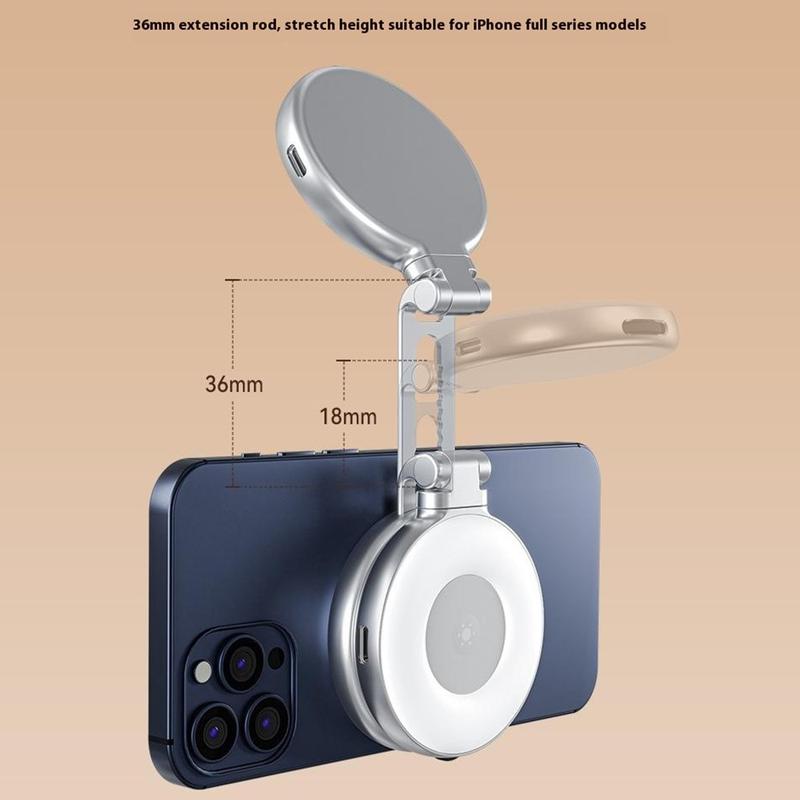 Förvandla varje ögonblick till ett felfritt porträtt. TELESIN S5-BGD-01 kombinerar en hög-CRI LED-panel, 360° svängbar arm, MagSafe-fäste och 56 mm HD sminkspegel i ett enda tillbehör i handflatestorlek. Fäst den magnetiskt på en iPhone 12-16 eller skjut in metallringen under ett mobilskal och luta, rotera och förläng sedan den 36 mm långa stången för att bada ansiktet i studioklassat ljus - perfekt för selfies, vloggar eller nattliga videosamtal över hela Europa.