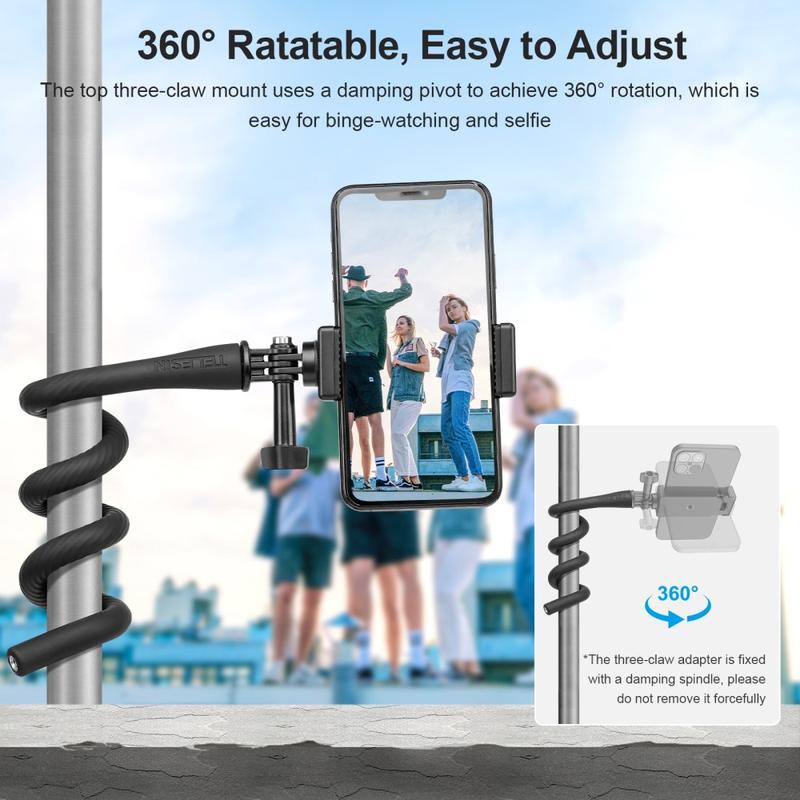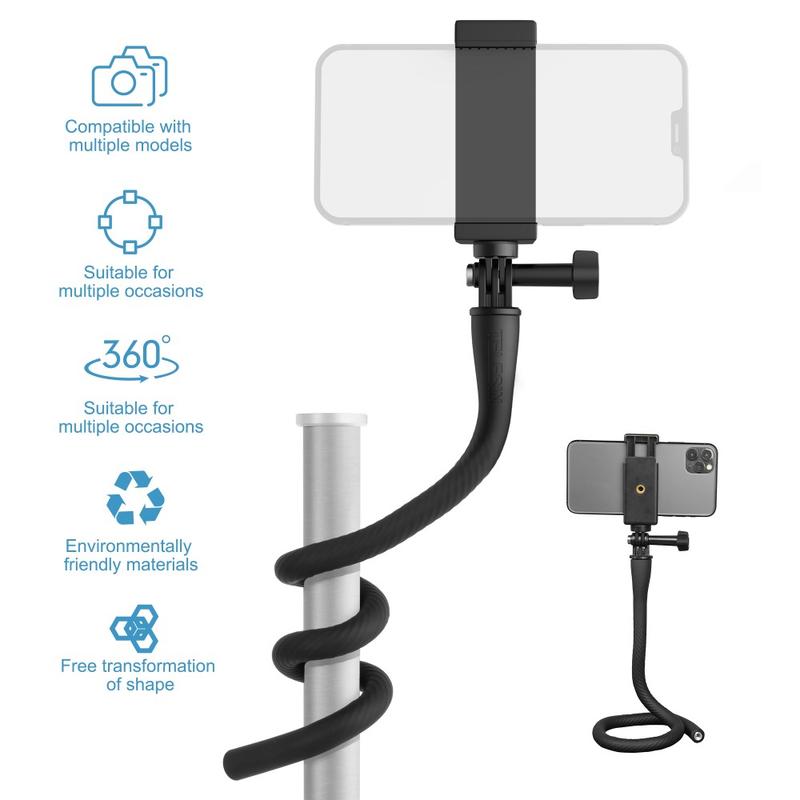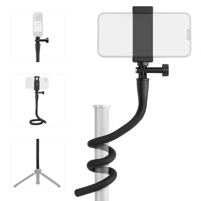Telesin TE-FM-003 har en böjbar, omslutande design med en inbyggd flexibel aluminiumremsa, så att du kan fästa den på stolpar, räcken, handtag, grenar eller andra föremål för kreativa fotograferingsvinklar.
