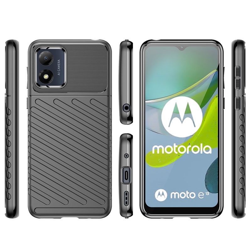 Din Motorola Moto E13 måste hållas skyddad mot oavsiktliga fall och repor och detta Thunder Series TPU-skal kommer att se till att det blir så. Bortsett från detta så kommer Thunder Series TPU-skal till Motorola Moto E13 också se till att din mobil inte glider ur händerna på dig och att du får full åtkomst till alla knappar och portar.