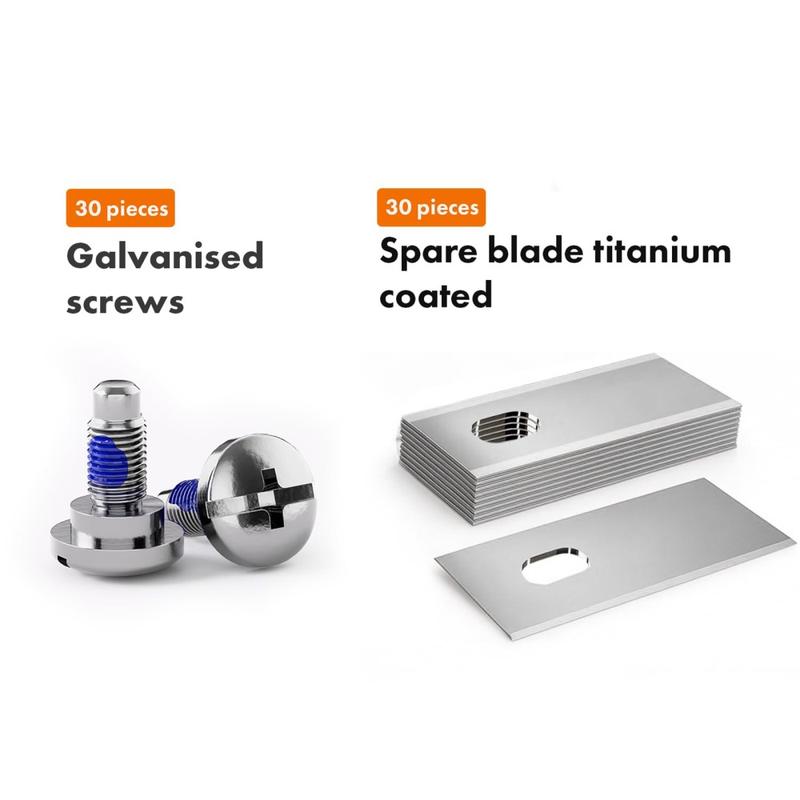 Det är också ett praktiskt alternativ eftersom satsen innehåller både blad och skruvar, så att du har allt du behöver för rutinunderhåll i ett paket. Titanbeläggningen och den korrosionsbeständiga skruvkonstruktionen ger extra värde för utomhusbruk under hela klippsäsongen.