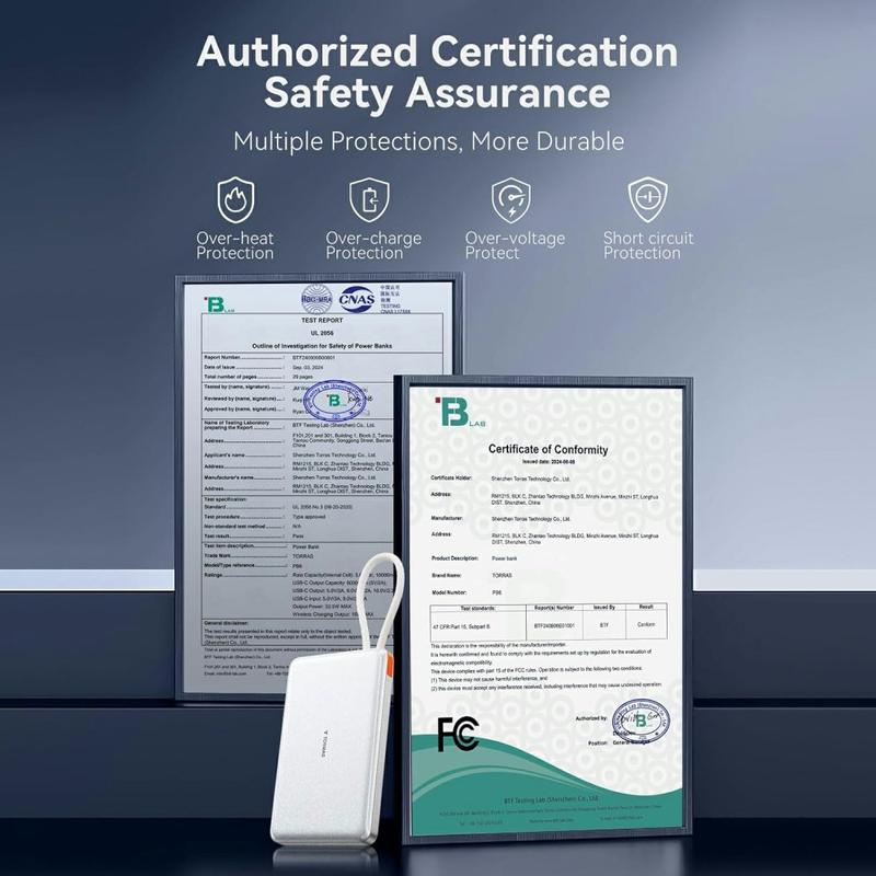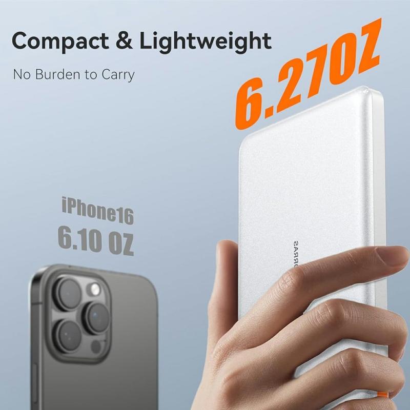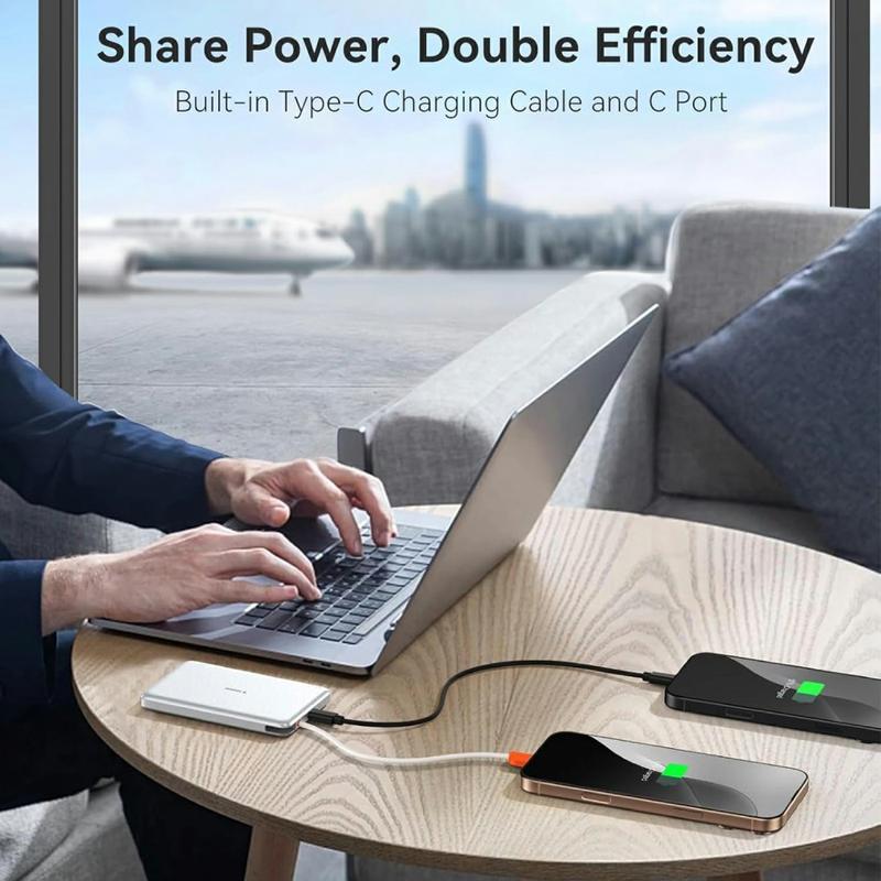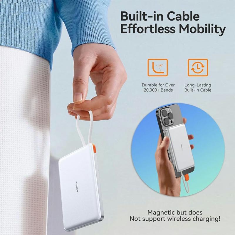 Torras Mini Slim PD Powebank med inbyggd USB-C-kabel - 22,5 W snabbladdning, 10000mAh