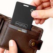 - Skjut in i en tunn kortplats för att hålla plånboken spårbar efter en utekväll.
