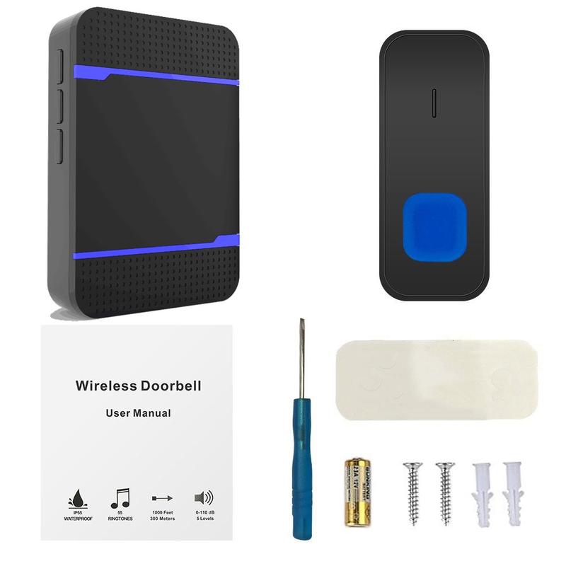 Trådlös dörrklocka med 2 mottagare och 2 tryckknappar - 55 melodier, IP55