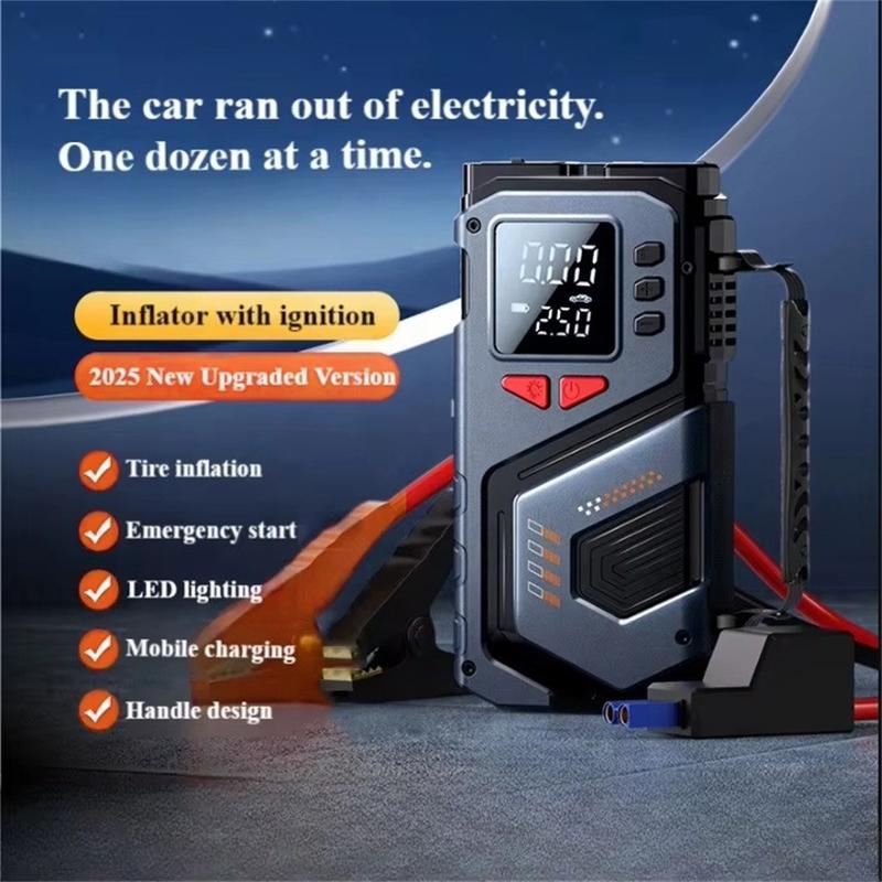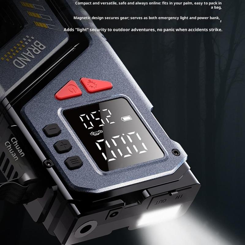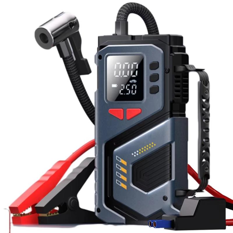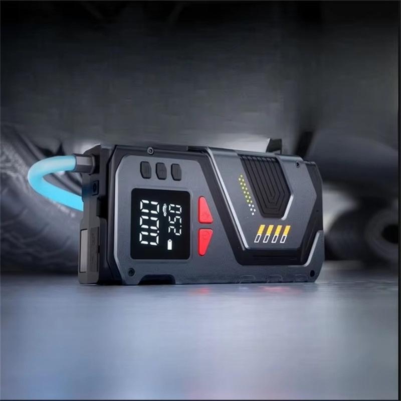 H06 multifunktionsenhet för bilar kombinerar en trådlös luftpump, nödstartare och LED-ficklampa, vilket ger dig en komplett lösning vid vägkanten i en kompakt och bärbar enhet. Perfekt för bilar, elfordon, cyklar och nödsituationer utomhus.