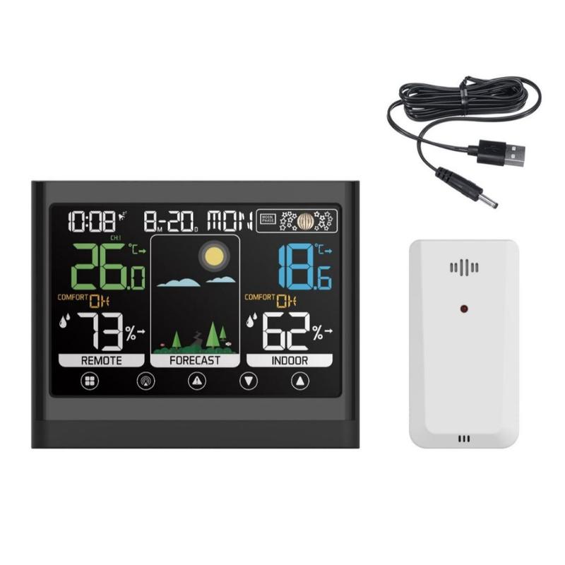 Trådlös väderstation med färgpekskärm, termometer, hygrometer och väckarklocka