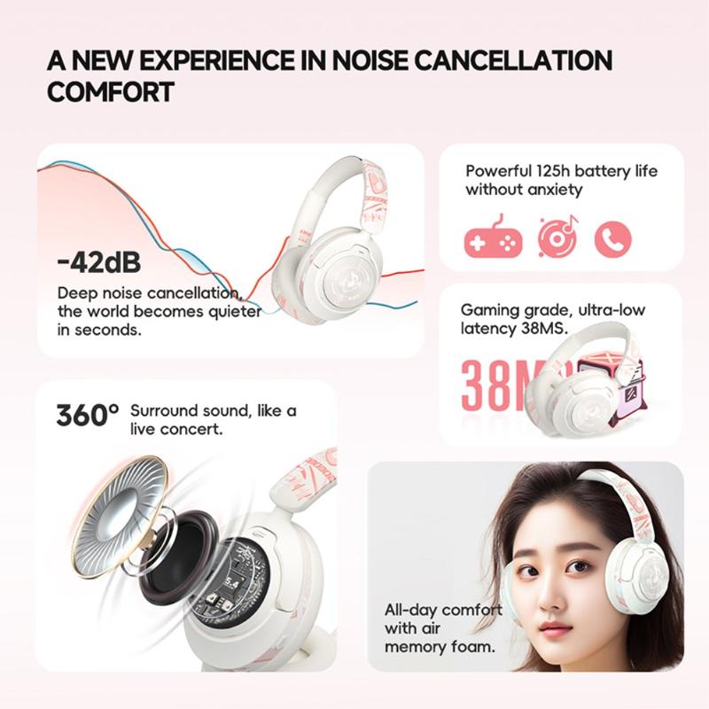Trådlösa gaminghörlurar med ANC och Bluetooth 5.4 GT1