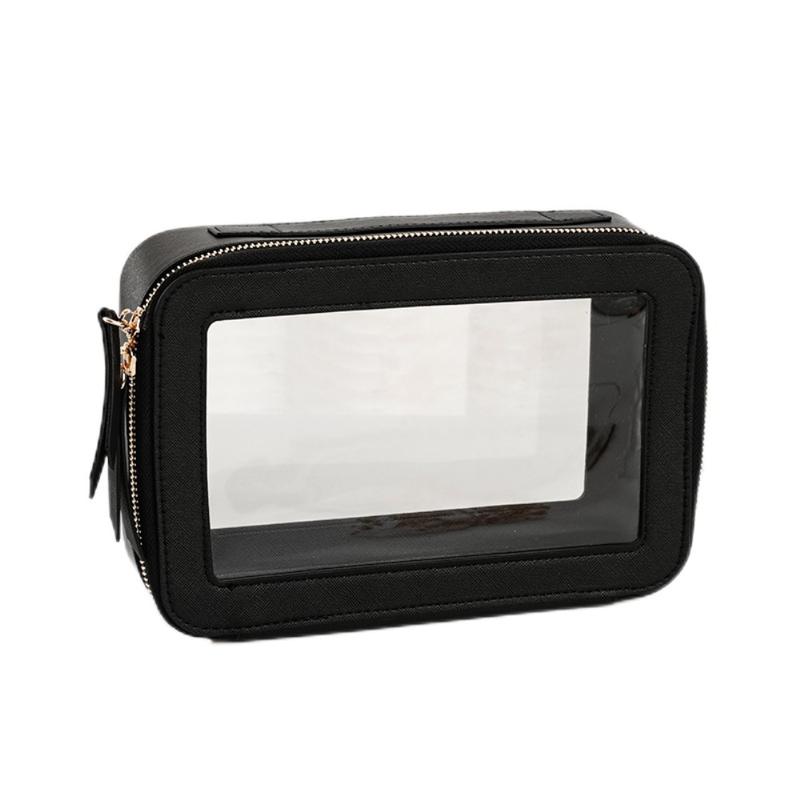 Transparent sminkväska i ett lager Vattentät kosmetikaväska i PU-läder - Svart