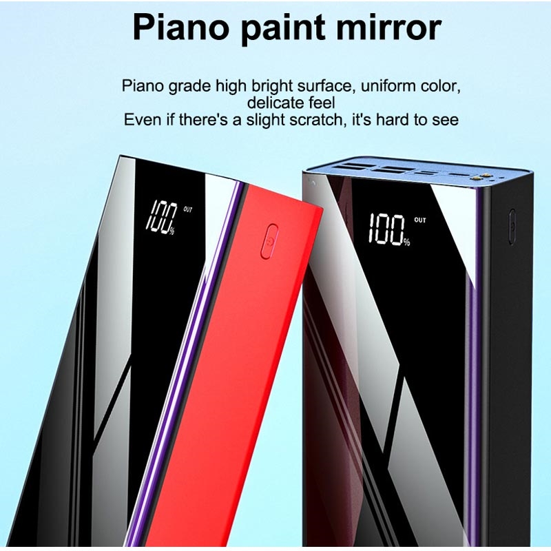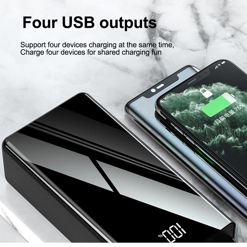 powerbank med enorm kapacitet är ett perfekt sätt att snabbt ladda upp din smartphone, surfplatta och andra elektroniska prylar medan du är på språng. Den är utrustad med tre USB-utgångar, en Typ-C utgång/ingång med PD, Lightning och MicroUSB-ingångar. Med fyra utgångar och en batterikapacitet på 50000mAh kan du ladda upp fyra enheter simultant och flera gånger om. Denna kompakta powerbank har även en LED-indikator för batteristatus på en spegelliknande yta, så du alltid vet hur mycket batteri som återstår.