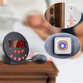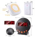 Denna modell inkluderar även ett trådlöst dörrklockssystem. När någon trycker på dörrklockan kan klockan meddela dig genom blinkande ljus, ljud och vibration, vilket gör den särskilt användbar för personer som kanske inte hör en vanlig dörrklocka tydligt. Dubbla strömalternativ ger extra tillförlitlighet, med likström för daglig användning och 3 AAA-batterier som reserv vid strömavbrott.