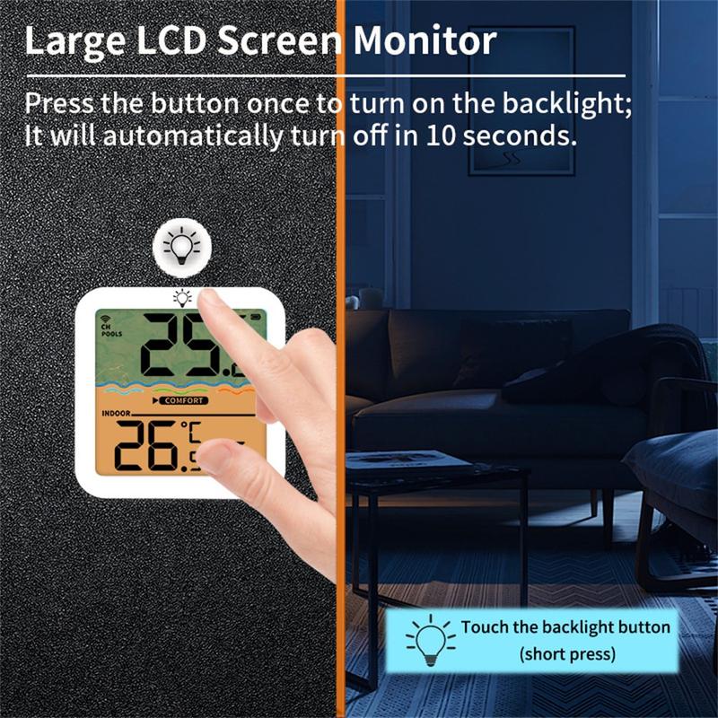Håll koll på temperaturen i din pool eller ditt spa på ett enklare sätt med den trådlösa pooltermometern TS-PL07. Denna flytande digitala termometer är utformad för smidig användning både inomhus och utomhus och består av en vattentät sändare samt en separat mottagare för inomhusbruk, så att du kan kontrollera vattentemperaturen utan att behöva gå ut.