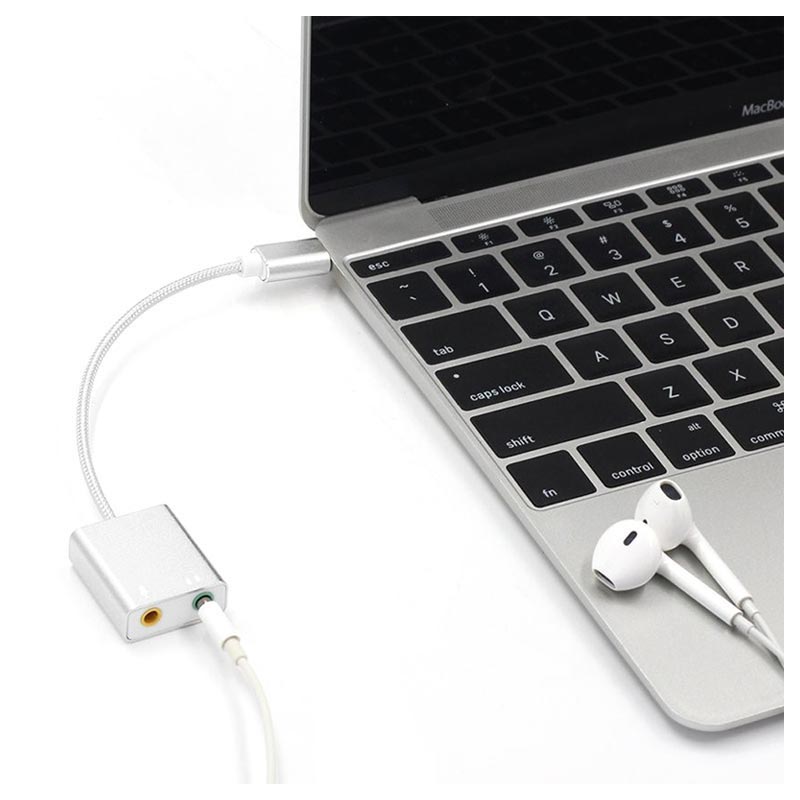 Anslut dina trådbundna hörlurar och mikrofon till din Typ-C (USB-C) stödjande dator och njut av musik, spel, Skype och mer med denna ljudadapter. Den kräver inga drivrutiner för att fungera med dina enheter, enkelt Plug & Play. Hållbart hölje i aluminiumlegering gör denna ljudadapter resistent mot mindre stötar och lätt på samma gång.