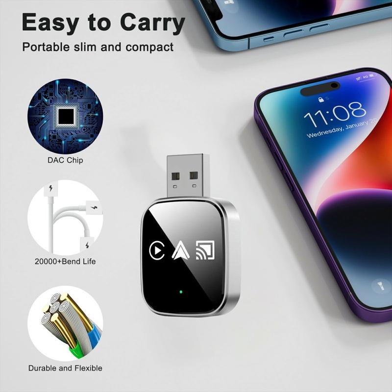 Trådlösa CarPlay- och Android Auto-adaptrar använder vanligtvis Bluetooth för initial parkoppling och Wi-Fi för dataanslutning med hög bandbredd, vilket är anledningen till att dual-band Wi-Fi kan förbättra stabiliteten. Många fabrikssystem stöder fullständig pekskärm och rattkontroller via adaptern, så körupplevelsen förblir bekant – bara utan kabeln.
