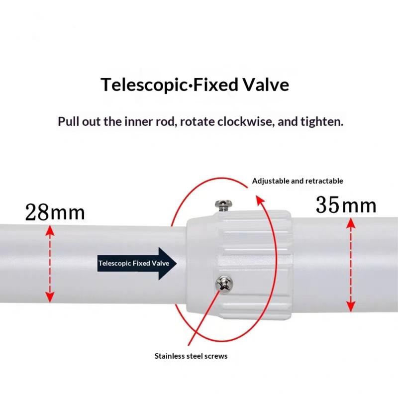 Ett integrerat låsventilsystem möjliggör snabb och enkel installation. Förläng bara den inre stången till önskad längd och rotera för att låsa den säkert på plats, vilket ger ett stadigt stöd under långvarig användning.