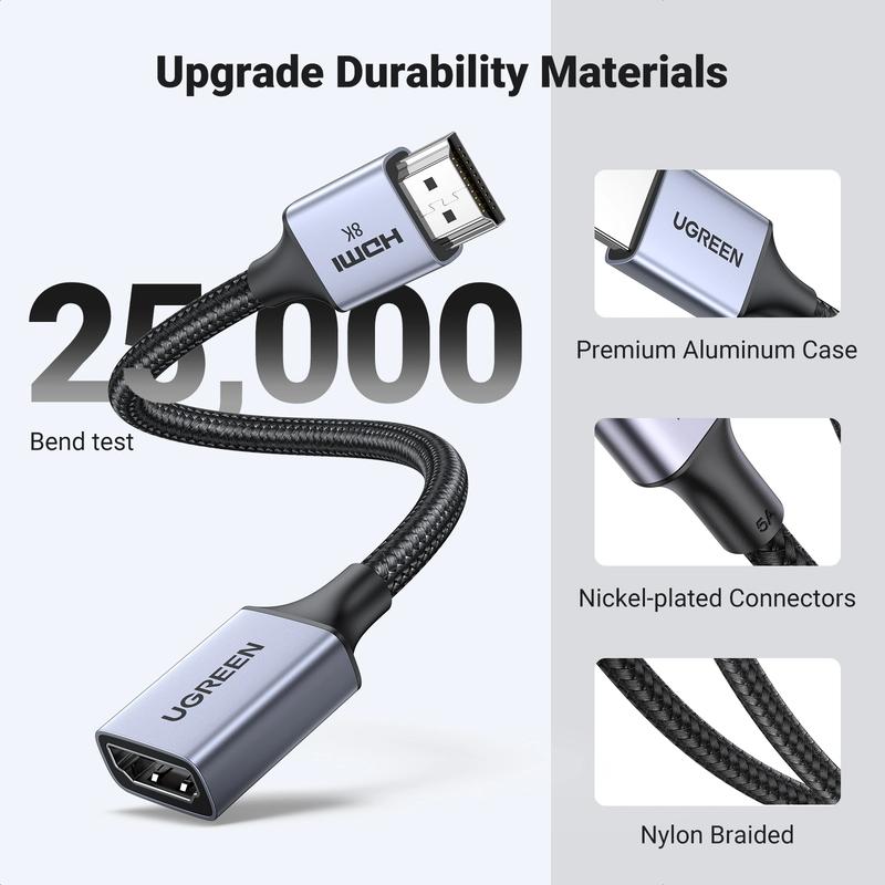 Ugreen HD165 8K HDMI-förlängningskabel, hane till hona - 15 cm, 48 Gbps