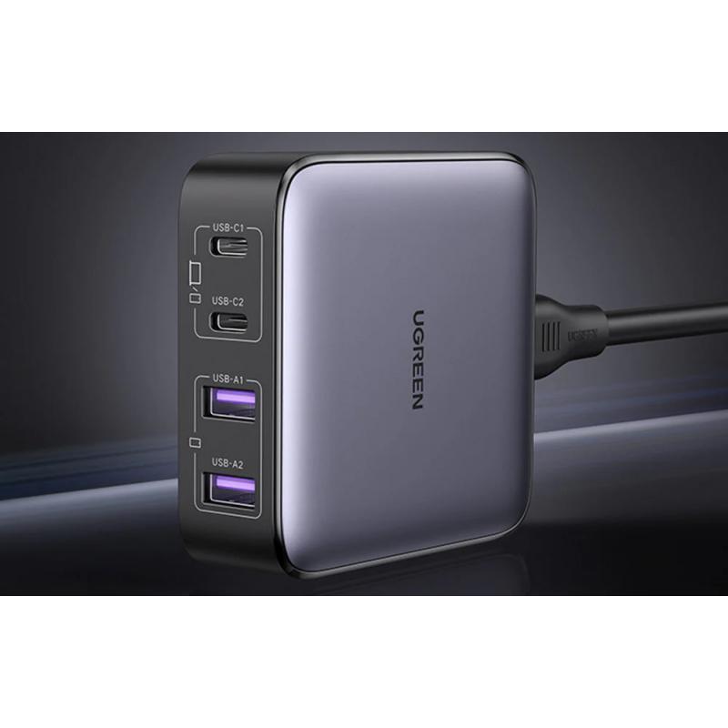 Ugreen Nexode 65W 4-portars stationär laddare - dubbla USB-C PD och dubbla USB-A QC snabbladdningsnav, kompakt GaN-design