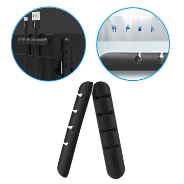 Denna Ugreen kabelorganiserare set innehåller två korthållare och varje del kan hålla upp till fyra kablar samtidigt. Tillverkad av flexibel silikon och designad med en självhäftande botten för att fixera den på valfri slät yta.