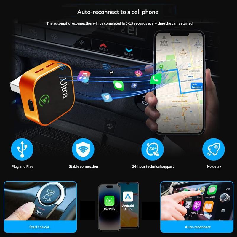 Förenkla din anslutning i bilen med den trådlösa 2-i-1-adaptern Ultra K15 för CarPlay och Android Auto. Denna kompakta USB-dongel är utformad för att omvandla en kompatibel kabelansluten CarPlay- eller Android Auto-anslutning till en trådlös, vilket gör att du kan ansluta din telefon utan att behöva koppla in en kabel varje gång du kör. Dess lilla storlek och plug-and-play-design gör den till en praktisk uppgradering för dagliga pendlingsresor och vanlig bilkörning.