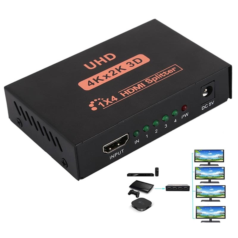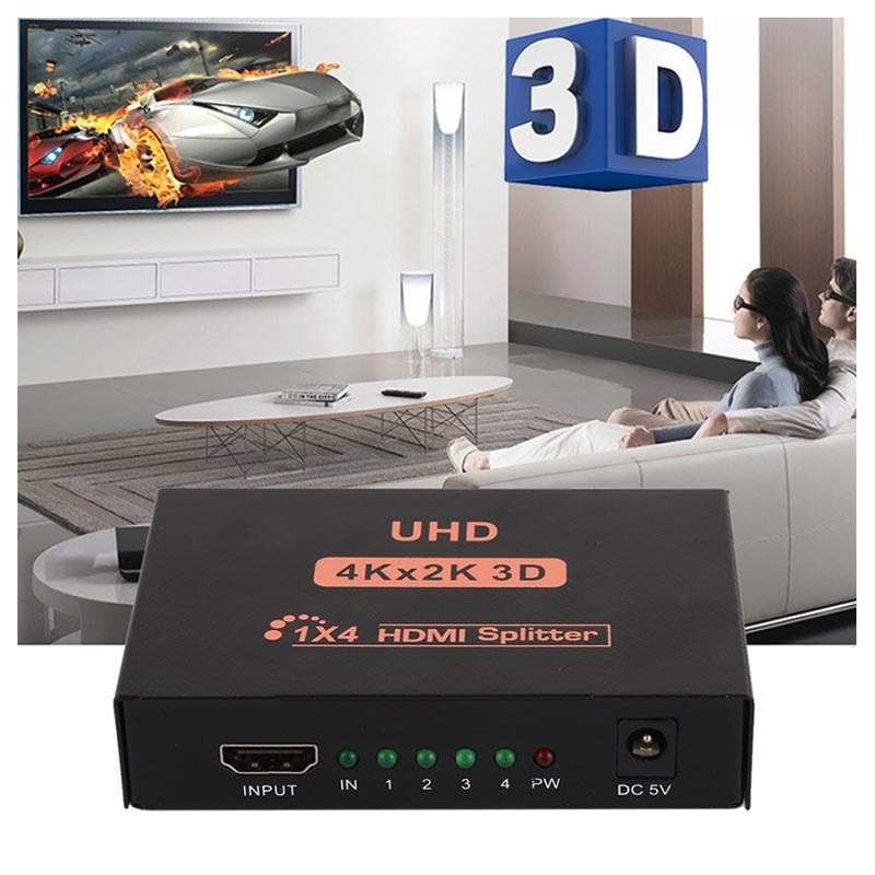 Anslut en HDMI-ingång till fyra identiska utgångar och sänd video och ljud utan att tappa någon kvalitet med denna högkvalitativa HDMI-switch. Du kan använda den till att koppla in din laptop, dator, DVD, TV-box eller spelkonsol med upp till fyra HDMI-skärmar. Den stöder FullHD 1080p och 3D-upplösning och kan nå upp till 3840x2160 bildupplösning.