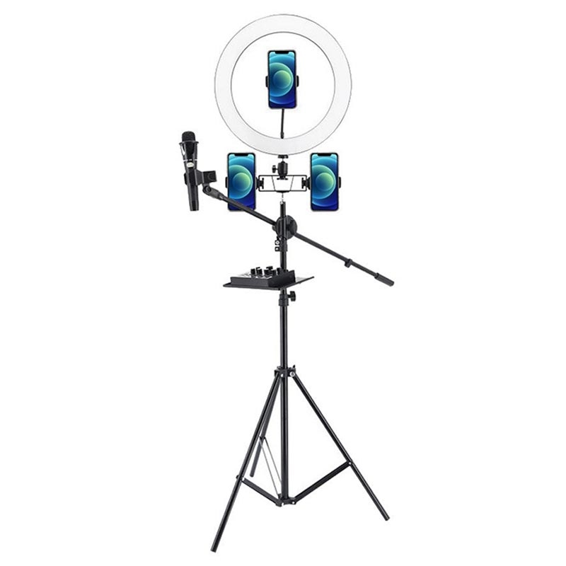UN-700 10'' LED-ringljus med stativstativ, ljudkortsfack och 3 telefonhållare för selfie- och videofotografering på YouTube Makeup