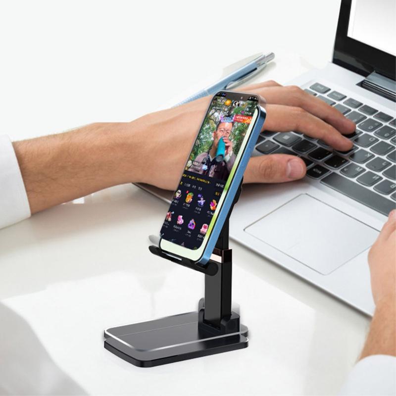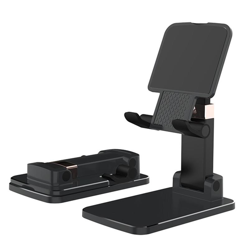 Stabilitet och skydd: Det hopfällbara telefonstativet är tillverkat av premium PC+ABS, elektroplätering, med släta kanter, som skyddar din enhet från repor