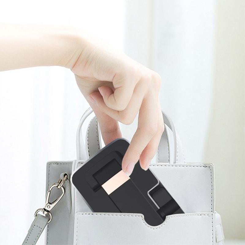 Bärbar design: Kompakt storlek kombinerat med en hopfällbar design, detta mobiltelefonställ är bekvämt att bära och är bärbart, du kan förvara det i din handväska
