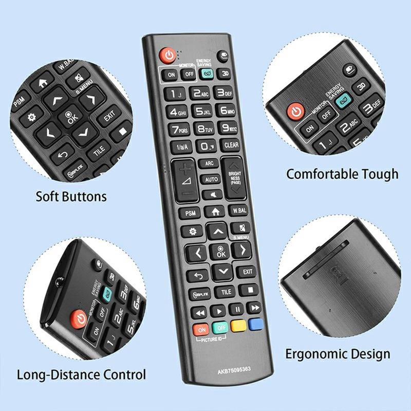 Den här fjärrkontrollen AKB75095363 är den perfekta ersättaren för din LG TV-fjärrkontroll - enkel att installera, hållbar och tillförlitlig. Oavsett om din originalfjärrkontroll är borttappad, trasig eller helt enkelt utsliten, återställer den här ersättaren full funktionalitet utan problem.