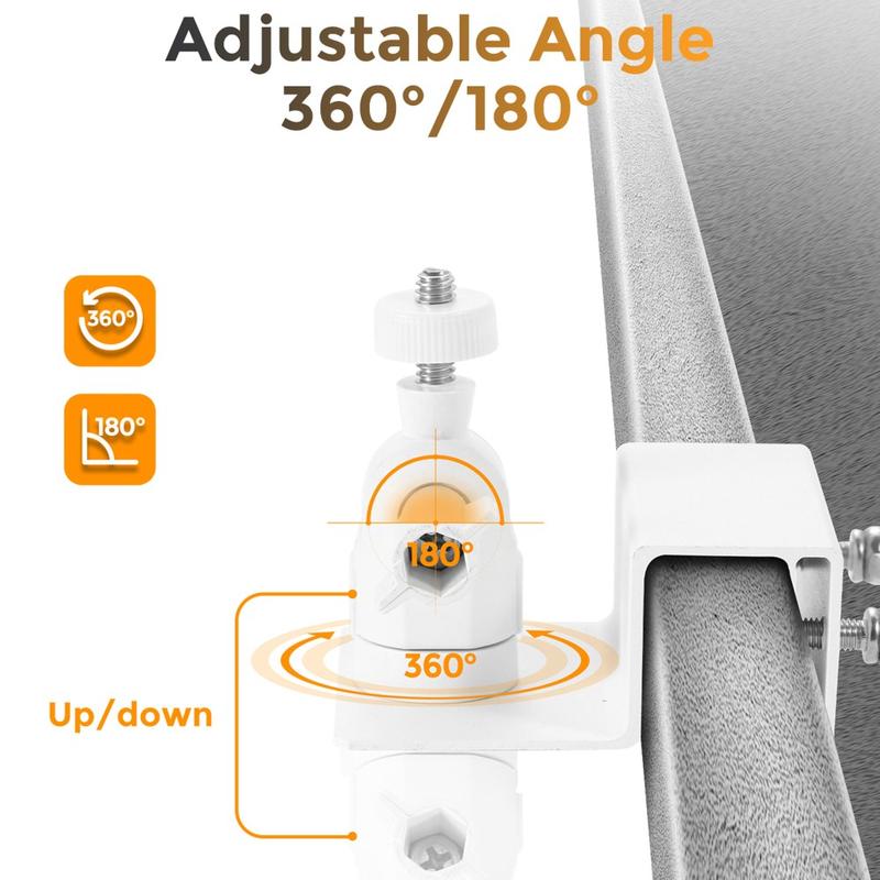 Universalmontering för säkerhetskameror på räcken och i takrännor - 360° justerbart aluminiumfäste för panorering och tilt med 1/4"-skruv