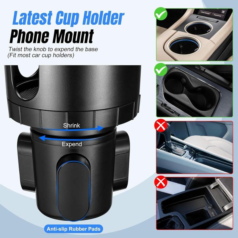 Håll din telefon säkert på plats och din mugghållare praktisk med detta 2-i-1-fäste för mobiltelefon som även fungerar som mugghållare. Den är utformad för att kombinera en stabil mugghållarbas med en justerbar smartphonehållare, vilket gör att du kan placera din telefon för navigering, samtal eller musikstyrning samtidigt som det fortfarande finns plats för muggar, flaskor eller glas. Detta gör den till ett smart val för förare som vill ha enklare åtkomst till sin telefon utan att blockera ventilationsöppningarna eller fästa hållare på instrumentbrädan eller vindrutan.