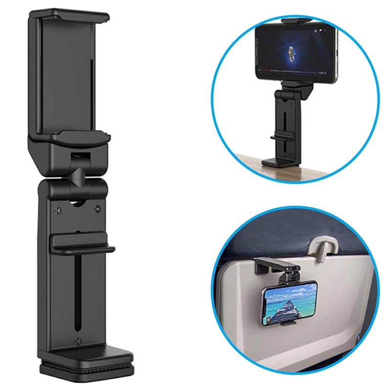Håll dig underhållen på långa flygresor med hjälp av denna multifunktionella mobilhållare.