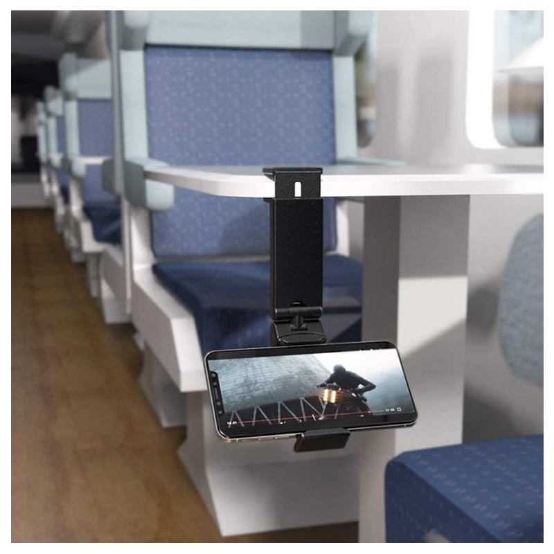 Denna mobilhållare är lämplig för användning på de flesta flygplansbord och skrivbord på upp till 40 mm och den kompakta hopfällbara designen gör den enkel att förvara i din väska eller ficka.