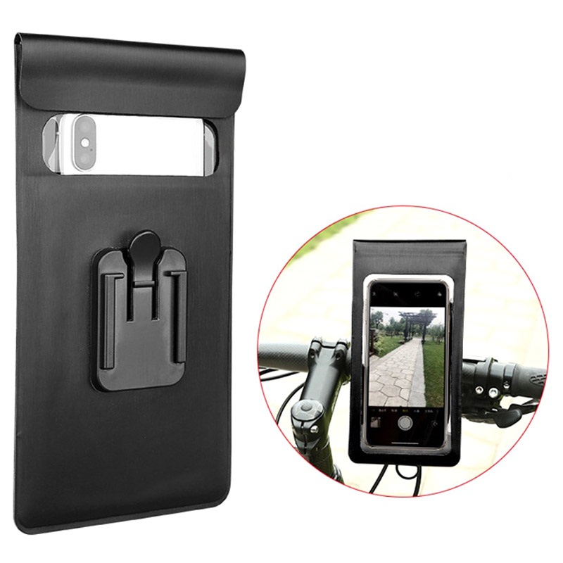 Nu kan du ta med dig din mobil på dina cykeläventyr tack vare detta universella cykelfodral och hållare för smartphones. Ett genomskinligt och touchkänsligt TPU-fönster på framsidan och baksidan för kameran gör att du kan besvara samtal, se notifikationer och använda kameran för foton och videor. Detta cykelfodral är roterbar 360 grader så du kan ställa mobilen i önskad vinkel. Fodralet är vattentätt, så det kan användas i alla väderförhållanden och du kommer kunna spela in alla ögonblick även i regnet vatten utan oro.