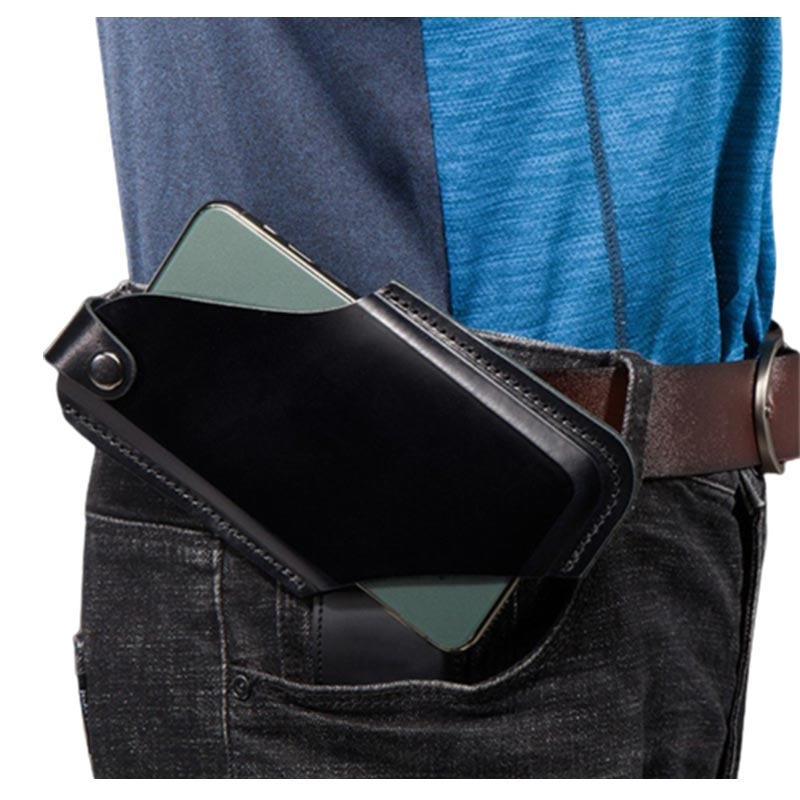 Skaffa lite mer utrymme i dina fickor genom att bära din mobil på höften med denna hölsterväska i äkta läder. Detta skal passar mobiler med storlek på upp till 18cm x 9cm och snäppspännet ser till att mobilhölstret hålls stängt. Tillverkat av äkta läder.