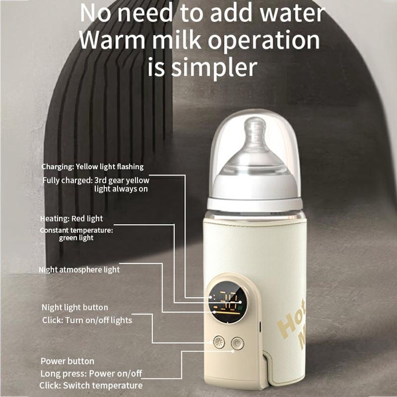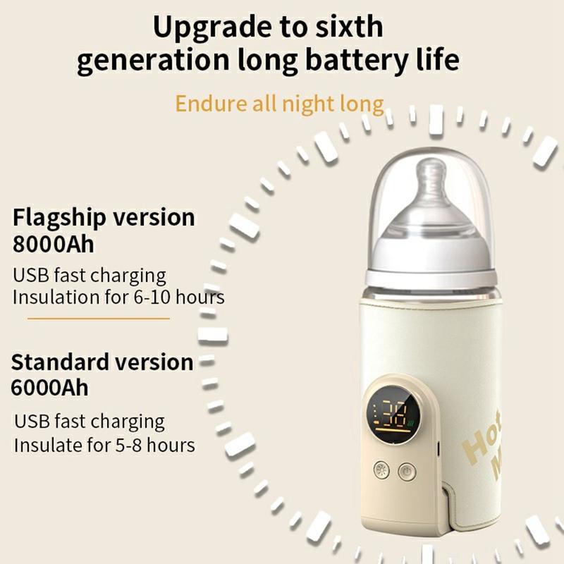 Bärbar flaskvärmare för nappflaskor - smart temperaturkontroll, 360° värmehylsa med USB/Typ-C snabbladdning