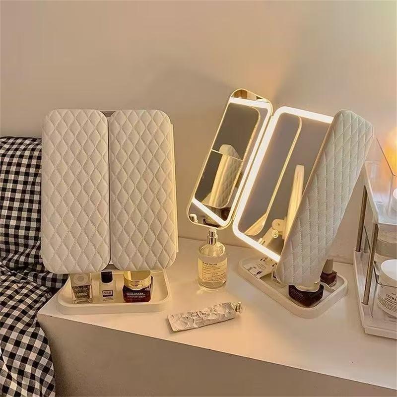 Tri-Fold LED makeupspegel kombinerar stil, funktionalitet och bekvämlighet. Med justerbar belysning, precisionsförstoring och sladdlös design är den ett viktigt tillbehör för att uppnå felfri makeup under alla ljusförhållanden.