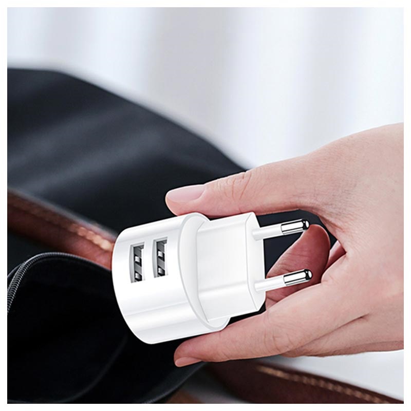 Usams CC081 T20 Snabb Reseladdare med Dubbla Portar och Lightning-Kabel - EU-Kontakt