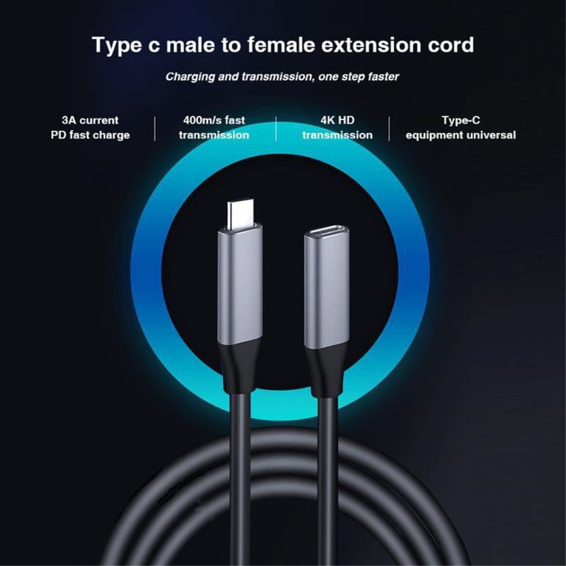 PD 60W USB-C-förlängningskabel - Typ C hane till hona, 0,25 m snabb laddning, datasynkronisering och 4K-videoutgång