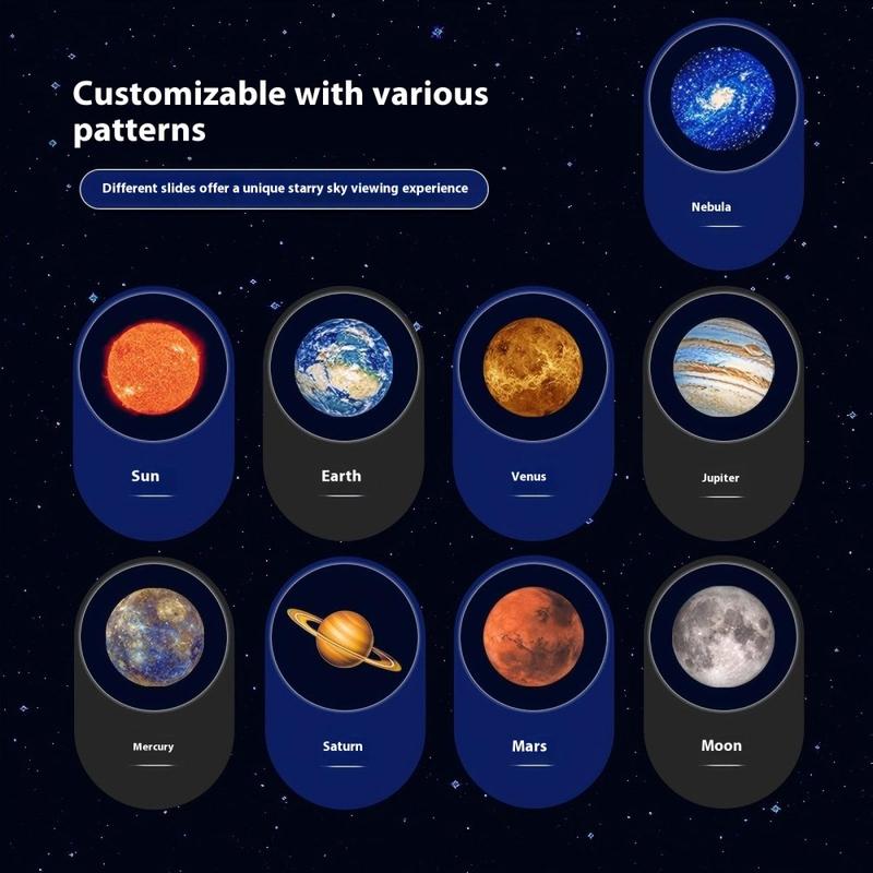 Planet Projection Lamp kombinerar utbildning, kreativitet och avkoppling i en elegant design. Den är perfekt för både nyfikna barn och astronomiälskare och förvandlar sänggåendet till en lugn, stjärnfylld upplevelse samtidigt som den tillför ett elegant dekorativt element till alla rum.