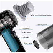 Den sladdlösa 6000Pa-dammsugaren för bilar är ett kraftfullt, bärbart rengöringsverktyg som är utformat för att hålla bilen, hemmet och kontoret skinande rena. Med 120 W högpresterande sugkraft och ett vakuumtryck på 6000 Pa tar den effektivt bort damm, smulor, djurhår, sot och till och med små vattenfläckar. De medföljande multifunktionella borsthuvudena når in i trånga utrymmen, bilsäten, golvmattor och bagageutrymmen för en grundlig rengöring. Den är lätt och sladdlös och ger upp till 30 minuters kontinuerlig användning på en full laddning, med ett uppladdningsbart 2000 mAh-batteri. Den stora dammbehållaren på 0,5 liter innebär att den inte behöver tömmas lika ofta, och USB-laddning ger bekväm strömförsörjning från adaptrar, powerbanks eller billaddare.