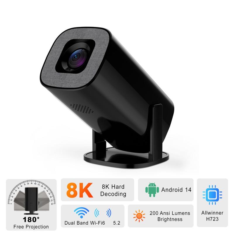 V1 bärbar Android 14-projektor (200 ANSI) - 720p native, automatisk keystone, 180 tilt, WiFi 6 dual-band och Bluetooth 5.2, 1 GB/8 GB