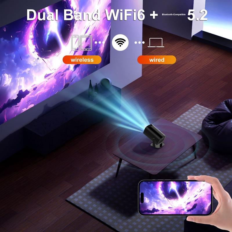 Installationen går snabbt och smidigt tack vare automatisk keystone-korrigering (30 %) och fyrpunktsjustering, som hjälper dig att få bilden i rätt vinkel även när projektorn inte är perfekt centrerad. Dual-band WiFi 6 och Bluetooth-kompatibel 5.2 stöder smidiga trådlösa anslutningar för skärmcasting, högtalare och hörlurar, och den tysta designen (<25 dB på 1 m) gör att du kan fokusera på det du tittar på.