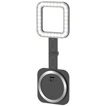 V18 Magnetisk selfie-fyllnadsbelysning - Bärbar LED-videolampa med telefonstativ, 3 W, 2500 K-9000 K, USB-C-uppladdningsbar