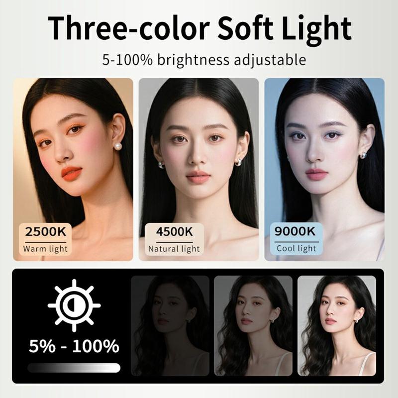 Justera ljuset från 2500K varma toner till 9000K kallt dagsljus för att matcha alla inspelningsmiljöer. Perfekt för livestreaming, produktfotografering, porträtt och konferenssamtal.
