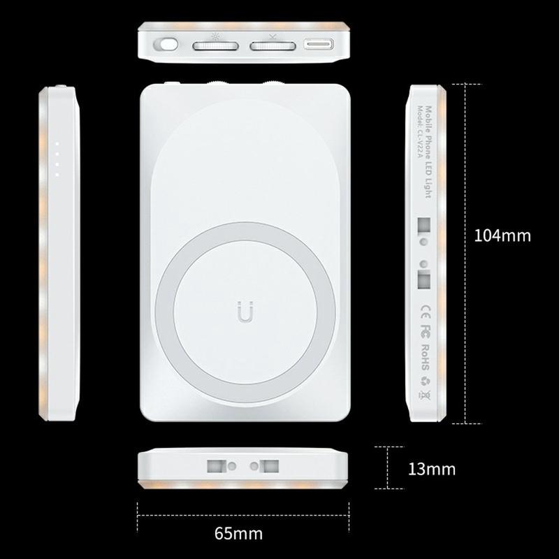 V22A 4W bärbar magnetisk LED-fyllningslampa - uppladdningsbar typ-C-kameralampa i fickformat för telefon och livestreaming