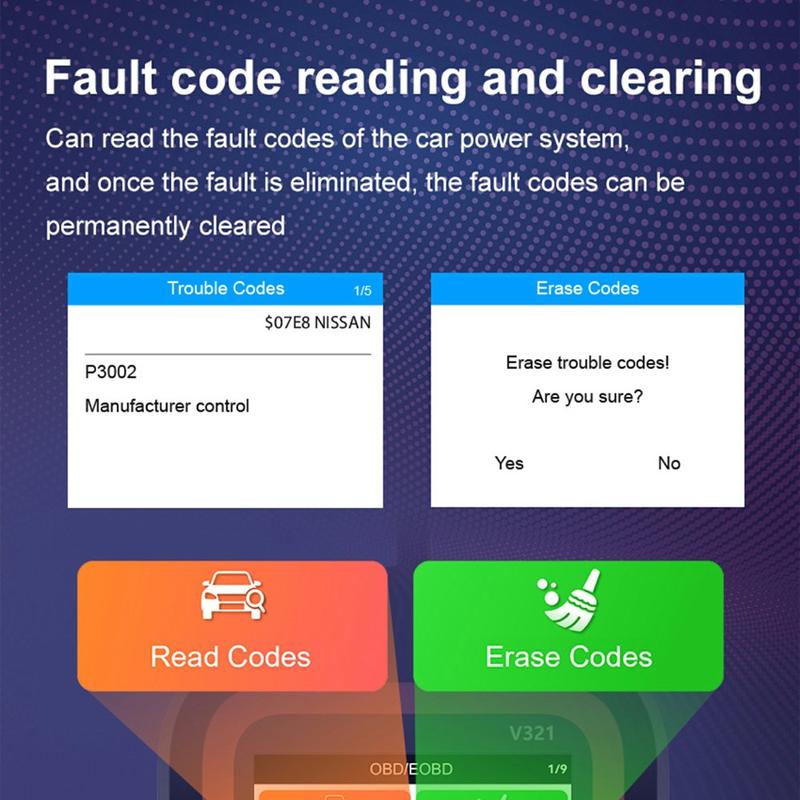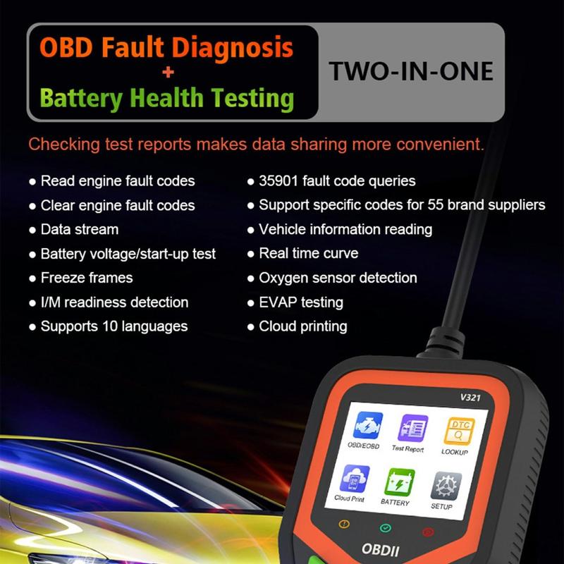 V321 OBD2 Bildiagnostisk skanner - 2.4″ färgskärm, motorkodläsare med batterihälsotest, live-data och flerspråkig meny